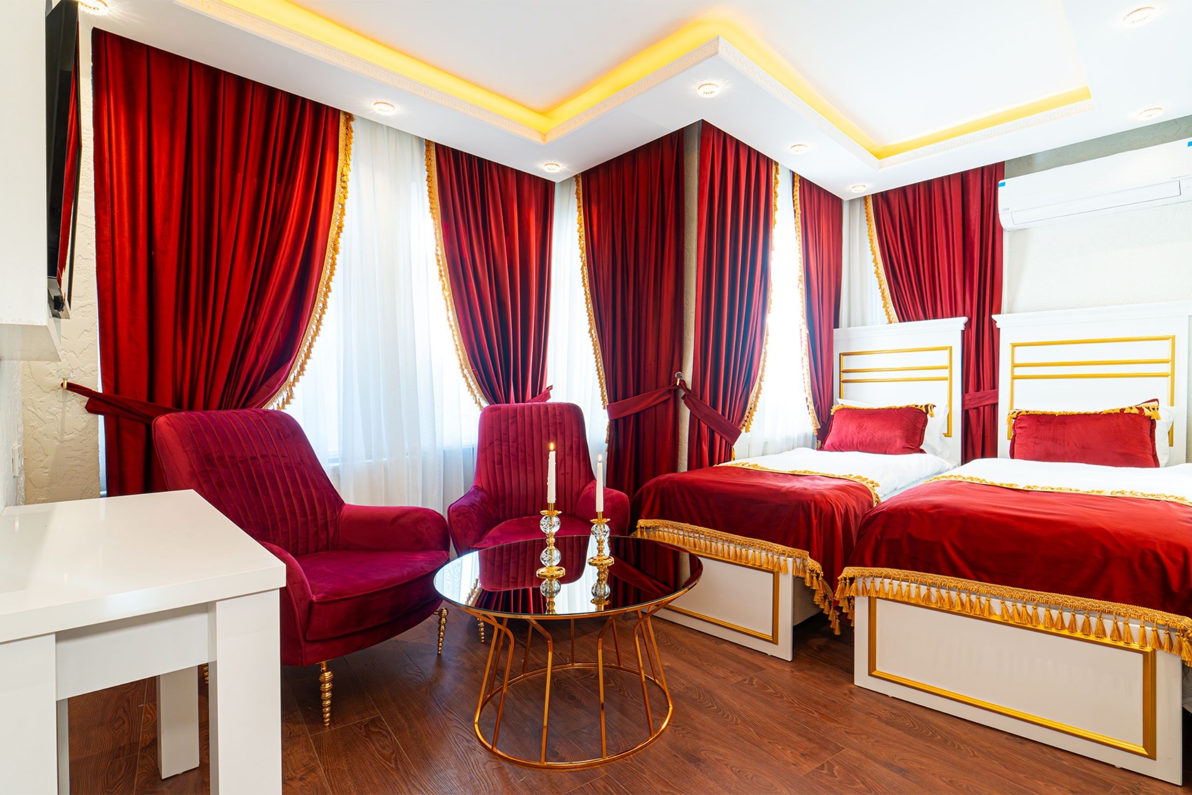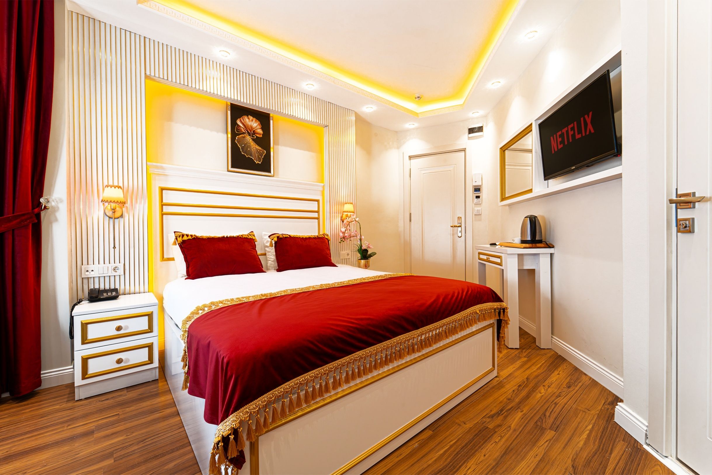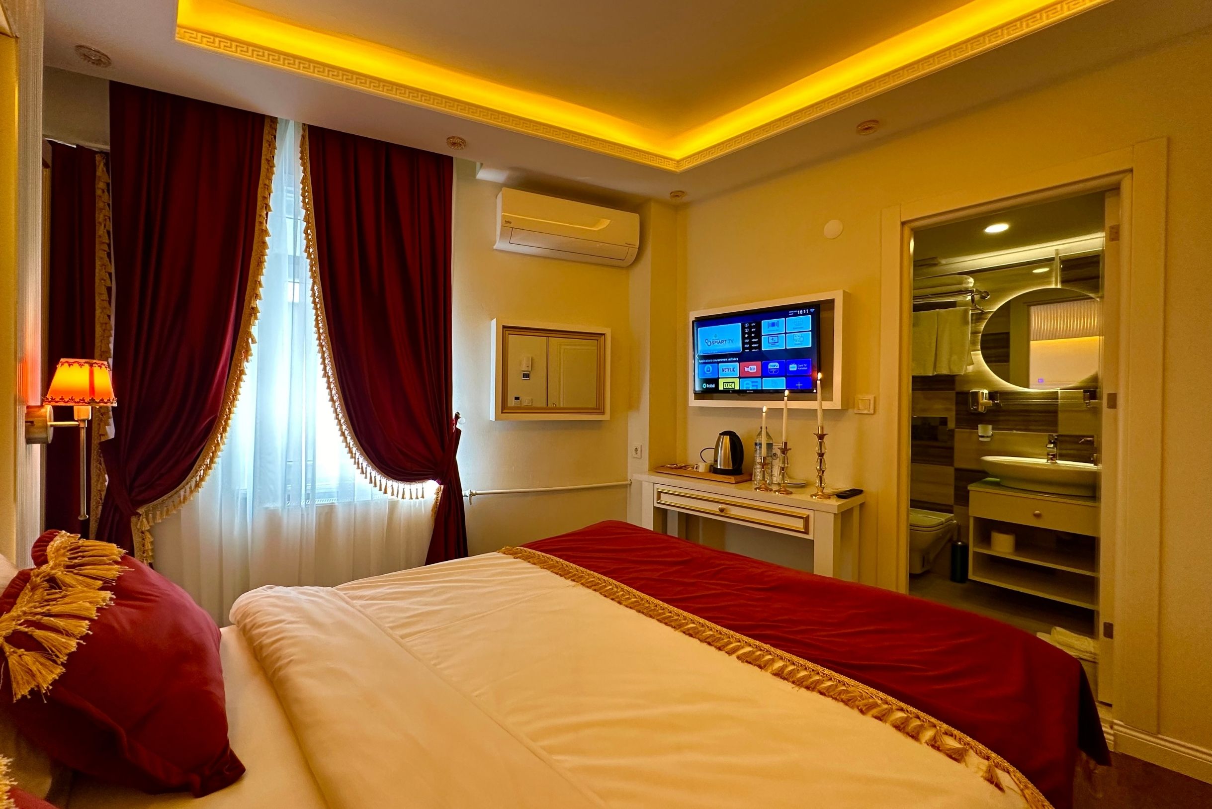 The Deluxe Double Rooms are elegantly designed and furnished with premium bedding, offering a harmonious balance of comfort and contemporary style. A selection of modern conveniences and high-quality amenities ensures a refined and comfortable stay. Enjoy entertainment with Smart TV, Netflix, and satellite channels