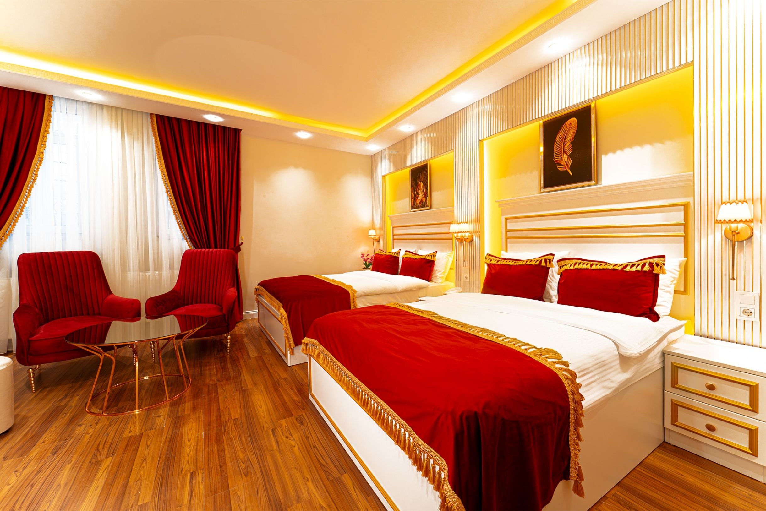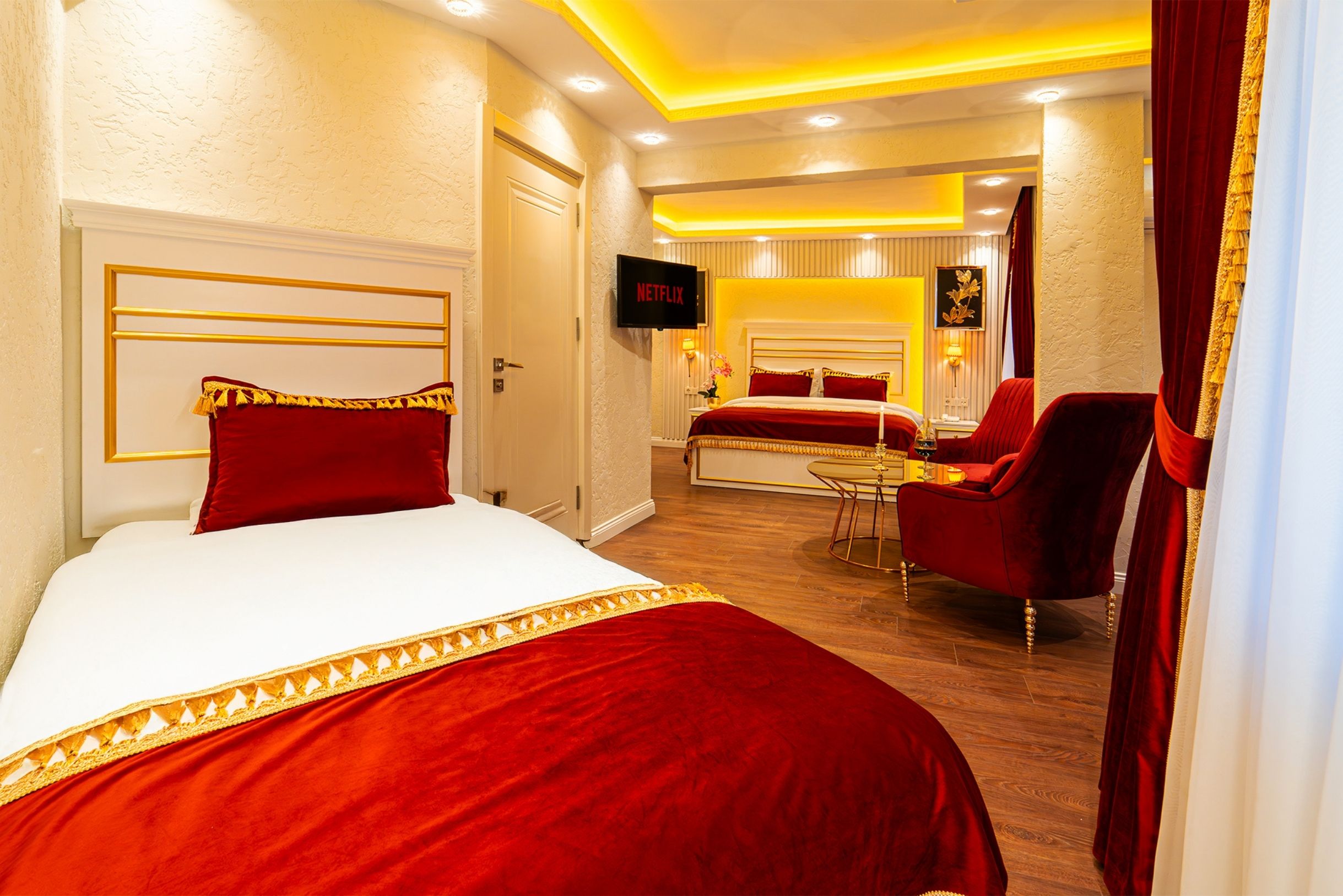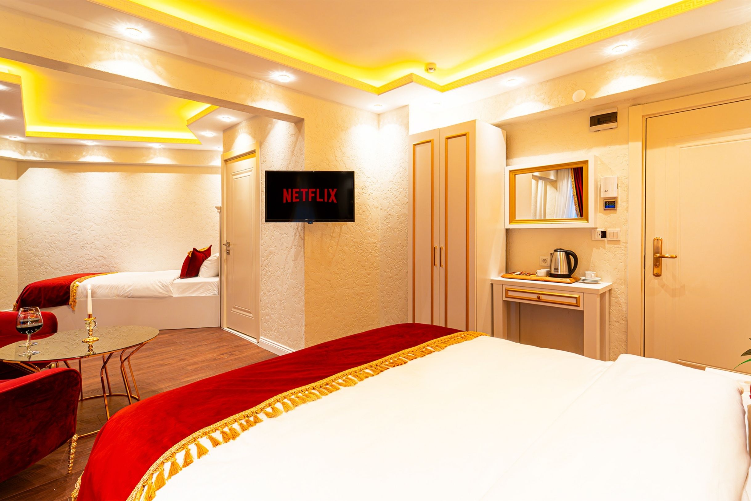 The Deluxe Suite Room is elegantly designed and furnished with premium bedding, offering a harmonious balance of comfort and contemporary style. A selection of modern conveniences and high-quality amenities ensures a refined and comfortable stay. Enjoy entertainment with Smart TV, Netflix, and satellite channels