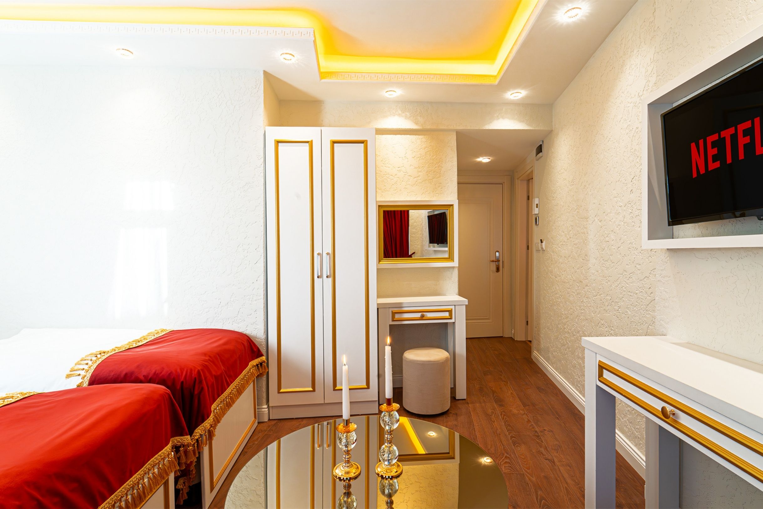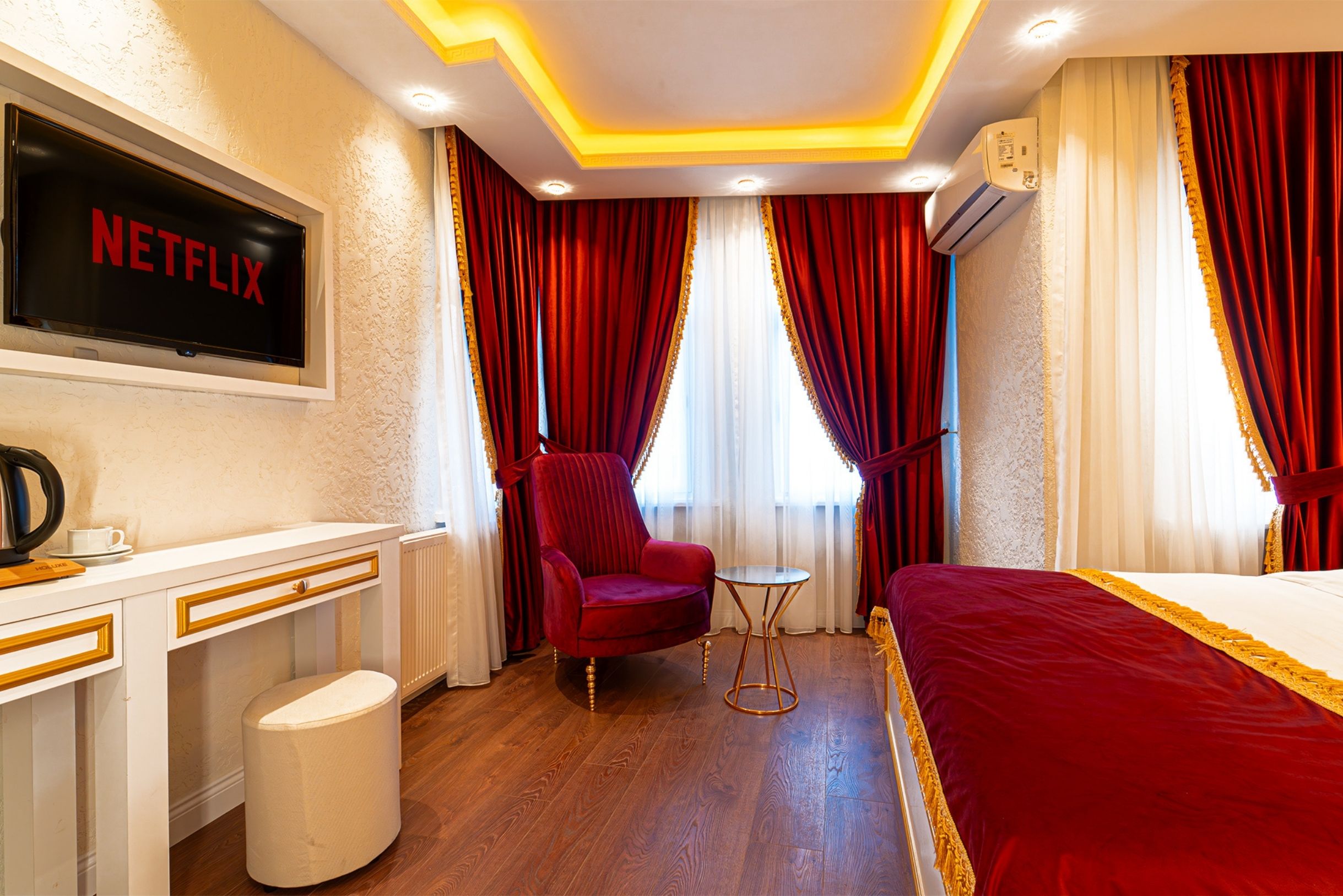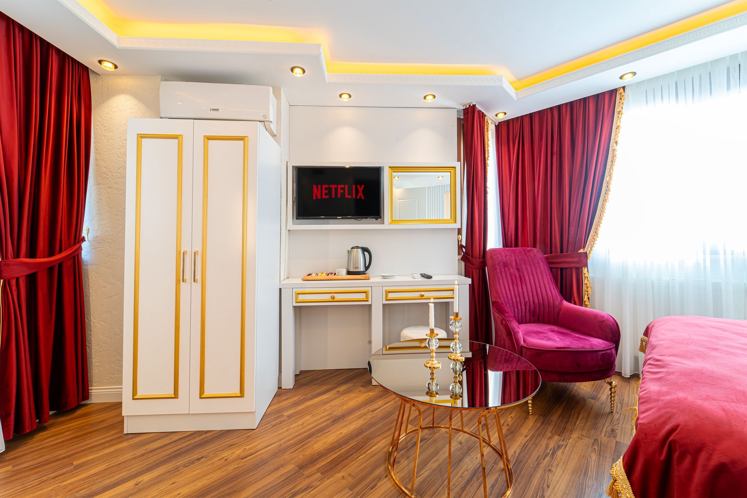 The Deluxe Suite Room is elegantly designed and furnished with premium bedding, offering a harmonious balance of comfort and contemporary style. A selection of modern conveniences and high-quality amenities ensures a refined and comfortable stay. Enjoy entertainment with Smart TV, Netflix, and satellite channels