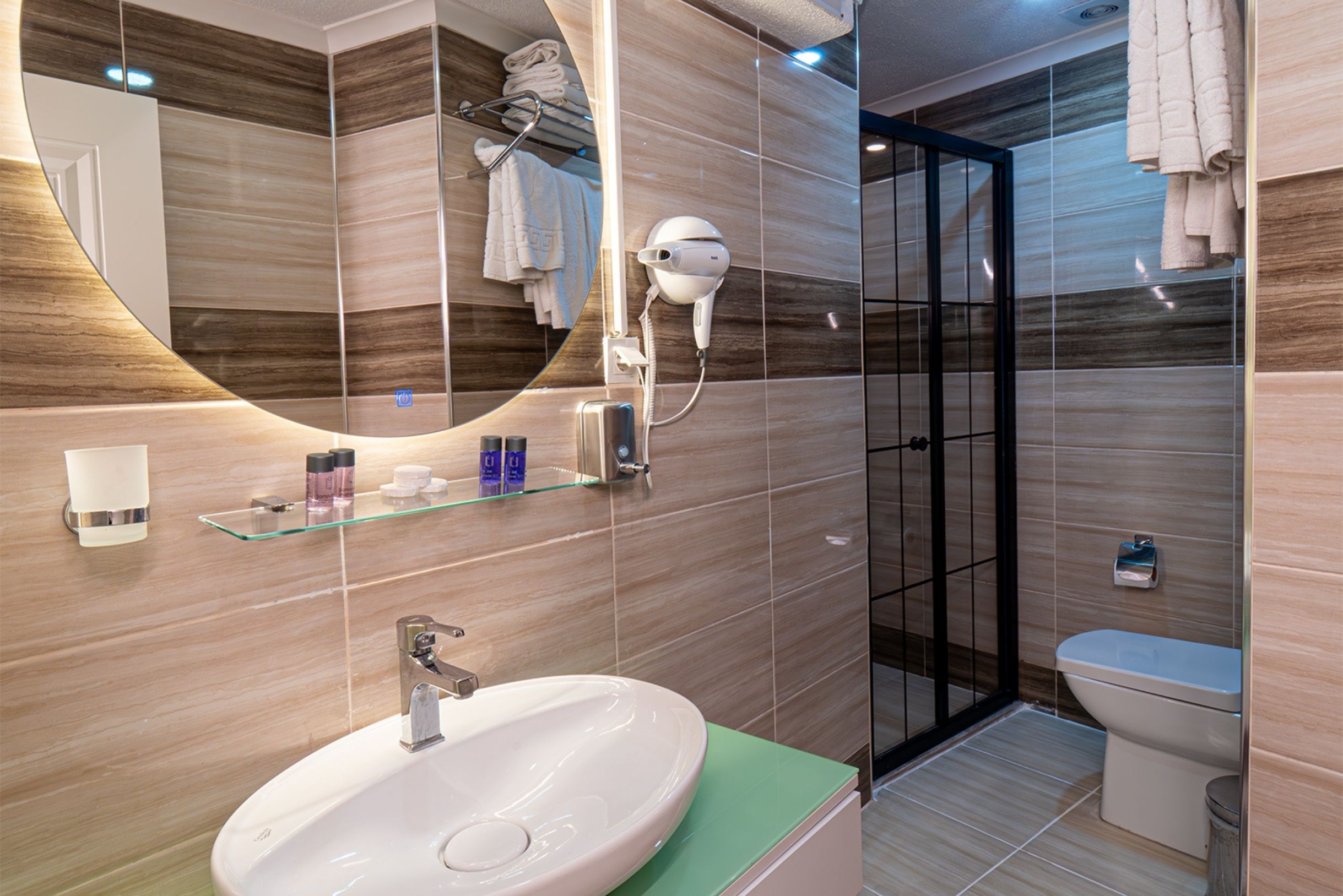 The Deluxe Triple Room With Sea View is elegantly designed and furnished with premium bedding, offering a harmonious balance of comfort and contemporary style. A selection of modern conveniences and high-quality amenities ensures a refined and comfortable stay. Enjoy entertainment with Smart TV, Netflix, and satellite channels This room type is located on the top floor of the hotel.